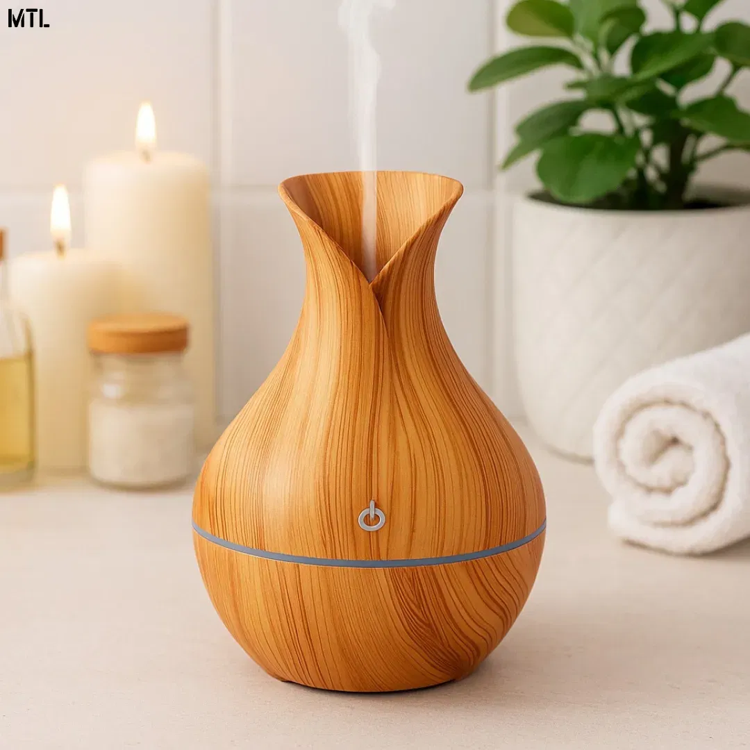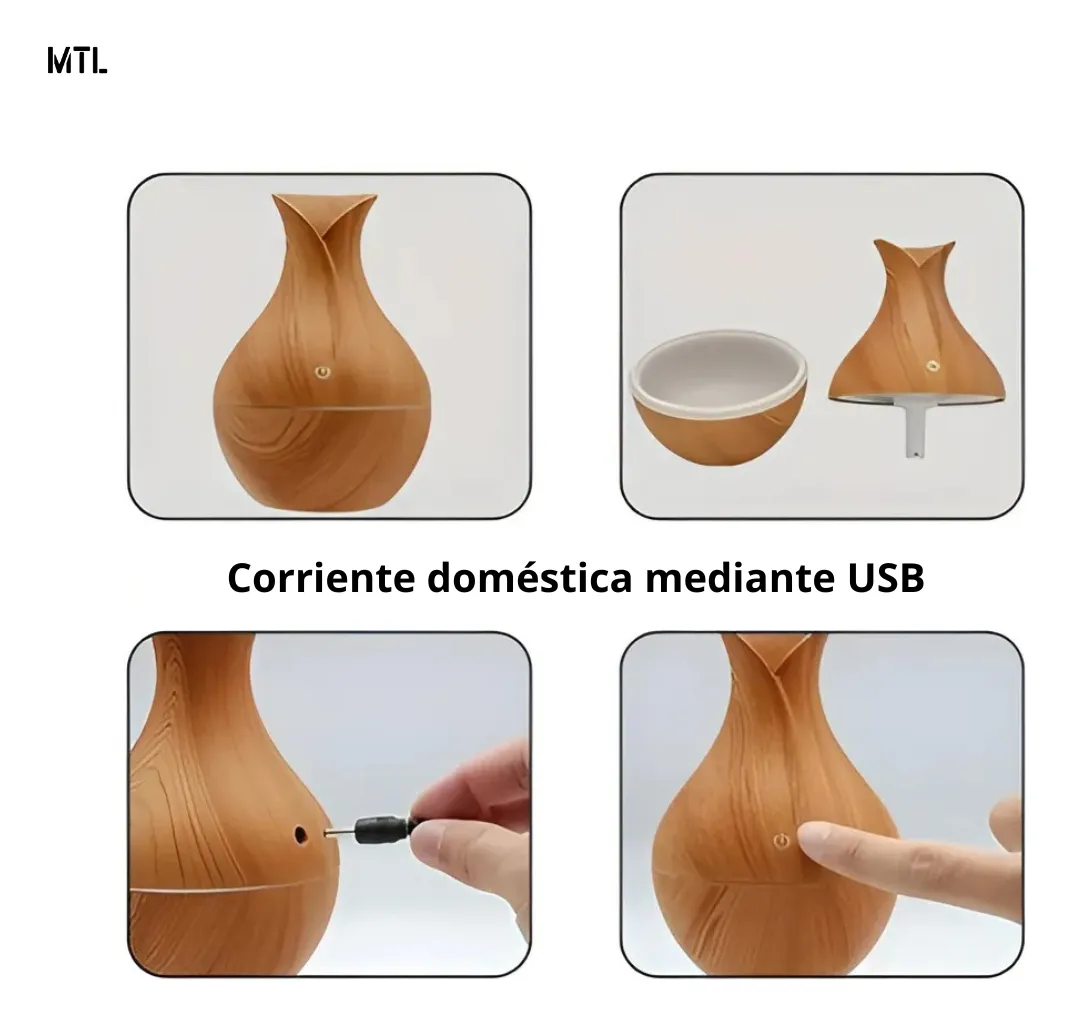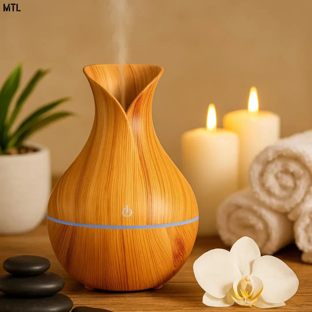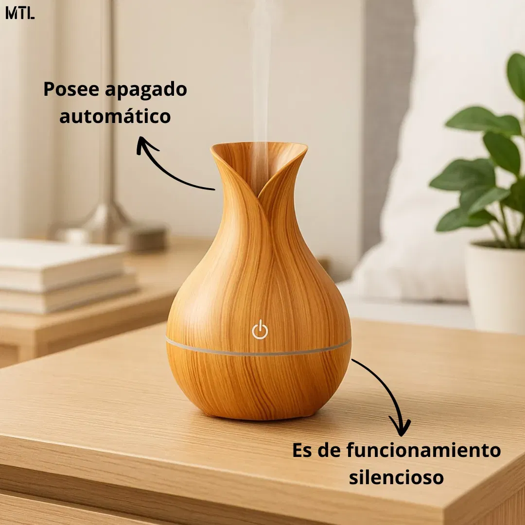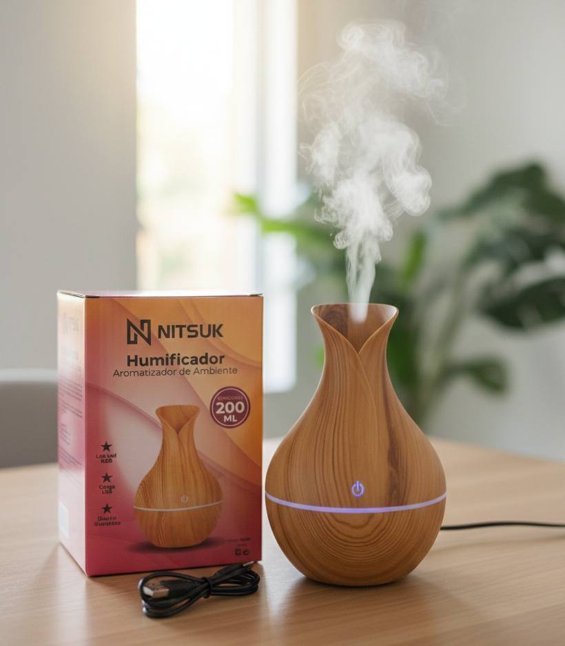 El humidificador de 200 ml ha sido dise帽ado para brindar una experiencia completa de confort, salud y bienestar en cualquier ambiente. Su dise帽o con acabado en imitaci贸n madera le da un estilo moderno y elegante, que no solo cumple una funci贸n pr谩ctica, sino que tambi茅n se integra como un accesorio decorativo en el hogar, la oficina o espacios de relajaci贸n. Gracias a su tecnolog铆a de vapor fr铆o, este humidificador ayuda a mantener la humedad adecuada en el ambiente, evitando la resequedad de la piel, la garganta y las v铆as respiratorias, especialmente en 茅pocas de calefacci贸n o climas secos.