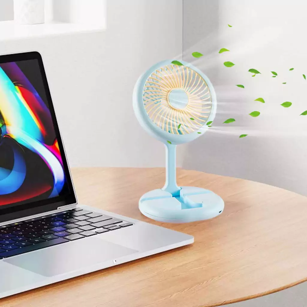 Ventilador de mano recargable USB plegable con soporte para Telefono celular para Escritoro Bolsas de vacaciones Cubierta de Temporal Azul