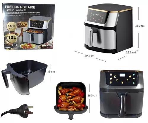 Gran Capacidad de 10 Litros: Perfecta para familias numerosas o para quienes disfrutan de cocinar en grandes cantidades. Desde un pollo entero hasta papas fritas crujientes, cocina todo en una sola tanda.