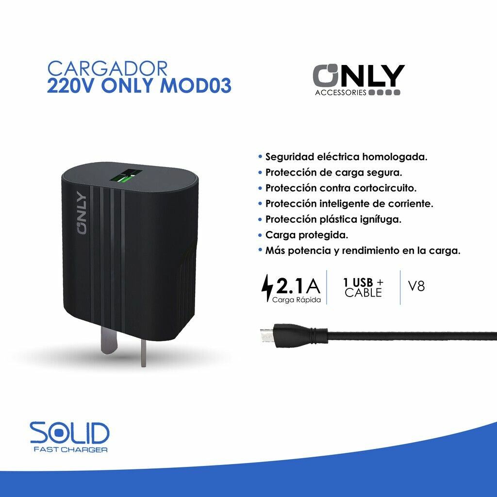 Cargador 220V Only 1 USB + Cable V8 Mod 03 2.1 Amp