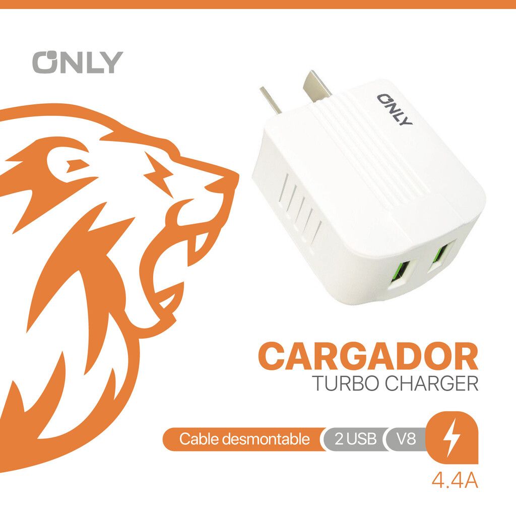 Cargador 220V Only 2 USB + Cable V8 Mod 06 4.4 Amp