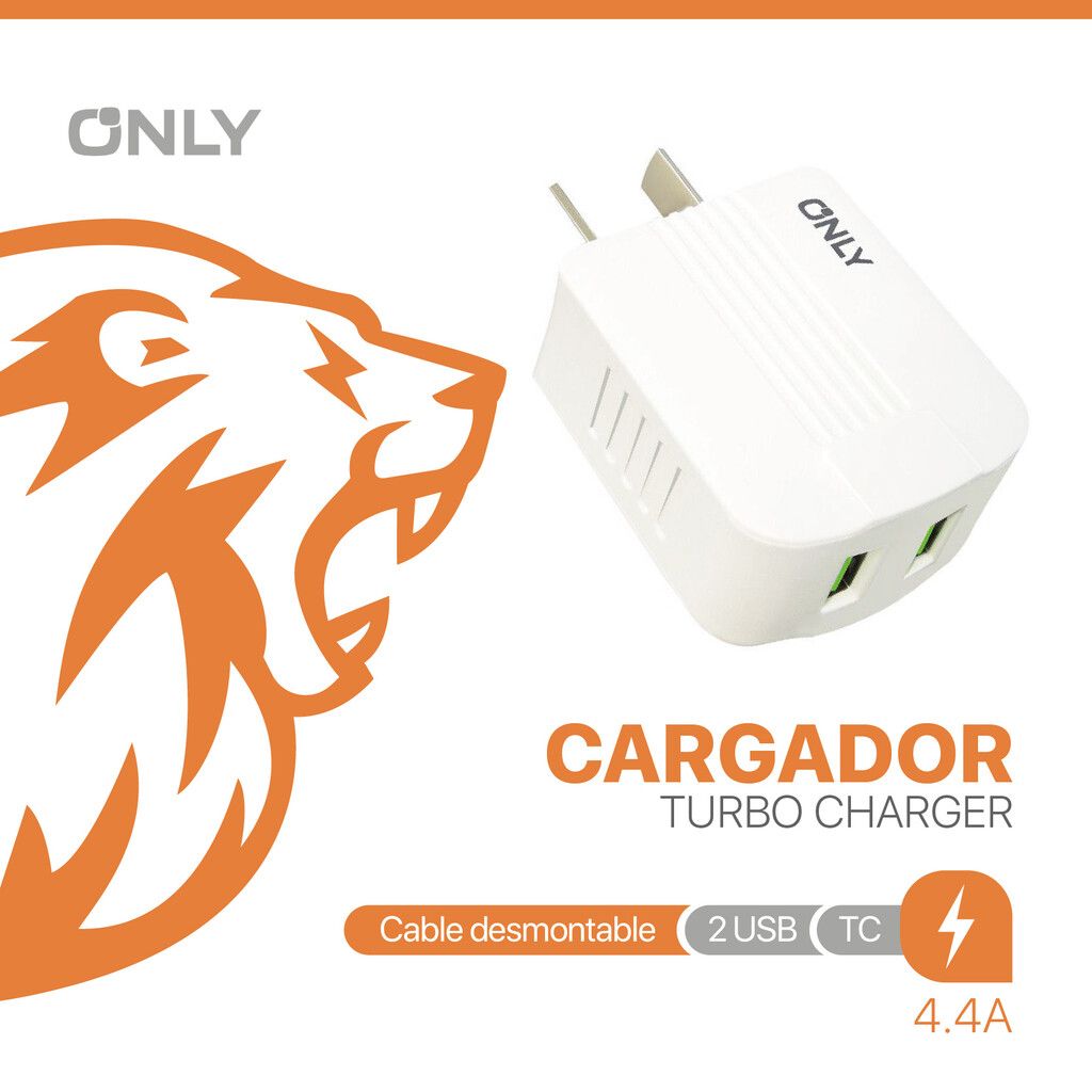 Cargador 220V Only 2 USB + Cable Tipo C Mod 06 4.4 Amp