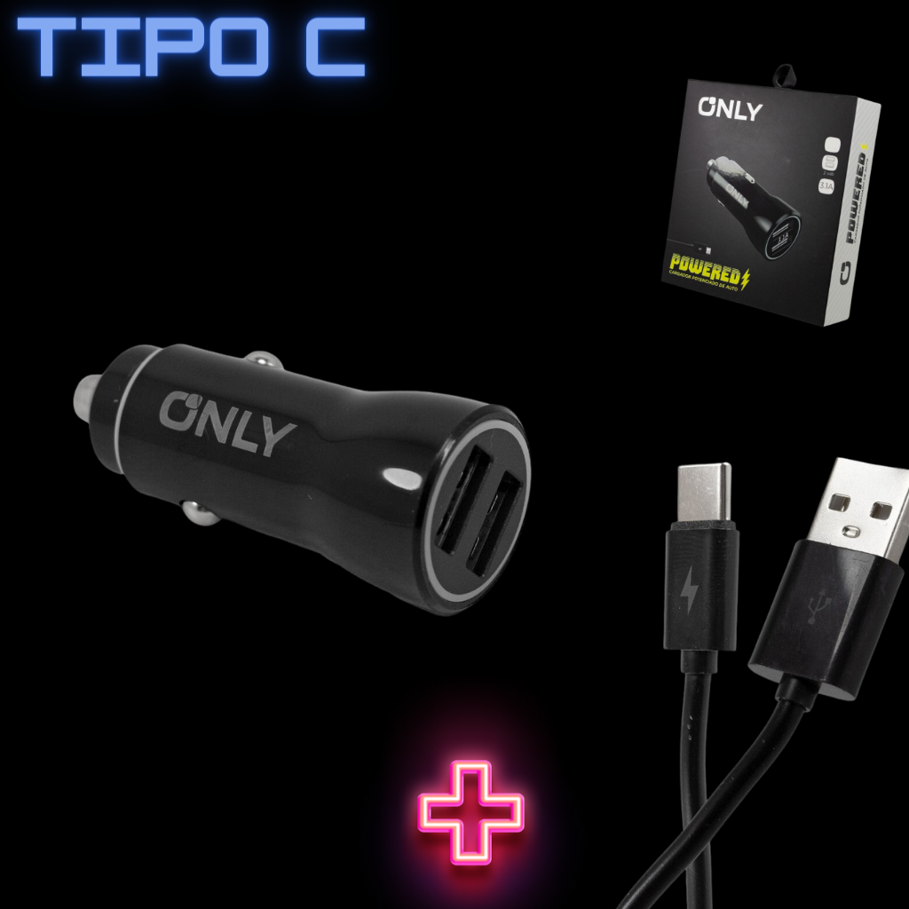 Cargador Turbo Para Auto 12 V 3.1a Only 2 Usb + Cable Tipo C