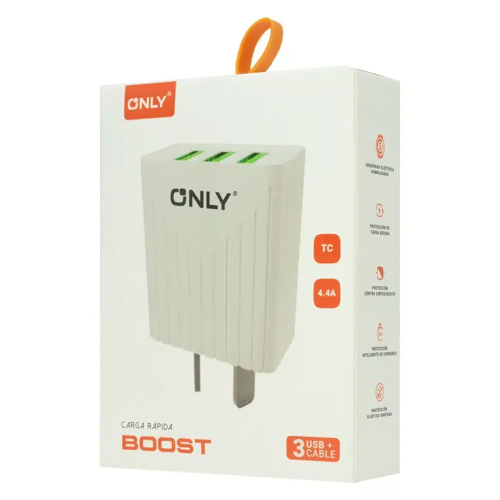 Cargador 220V Only 4,4 A 3 USB + Cable Tipo C Blanco