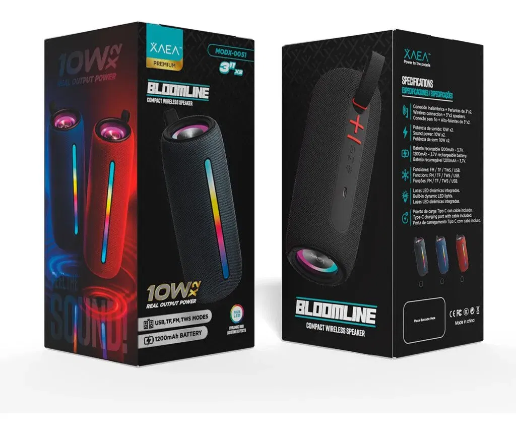 Descubrí el parlante inalámbrico compacto Bloomline XAEA Premium, potencia real y diseño moderno en un solo equipo. Con dos parlantes de 3” y 10W x2 de potencia, vas a disfrutar un sonido fuerte, definido y con graves que se sienten, ideal para reuniones, eventos o uso diario en casa.